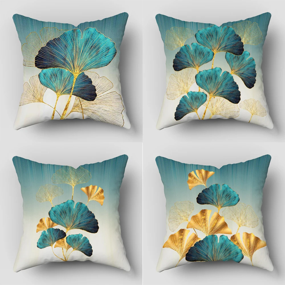 은행잎 청록색 골드 베개 쿠션 커버, 사각형 소프트 폴리에스터 식물잎